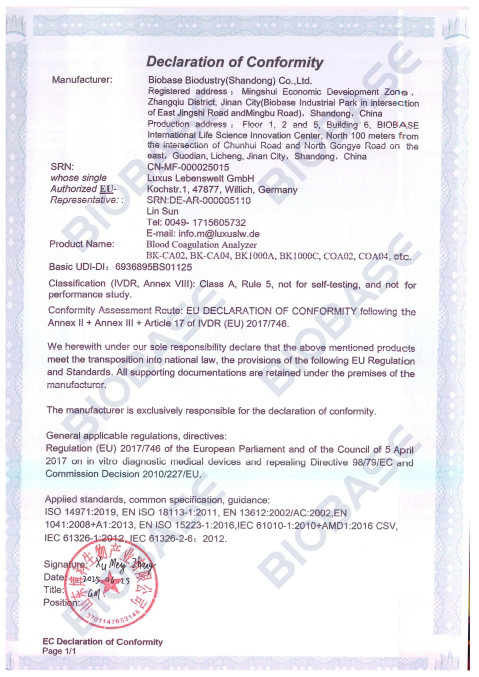 1.24DOC-IVDR-Blood Coagulation analyzer